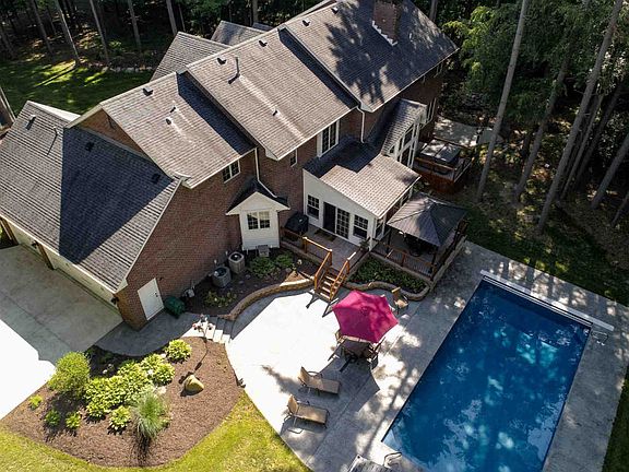 Extensive updates & beautifully maintained 5800+ sq. ft. of living & entertaining space, plus an outdoor oasis complete with pool & Pool house. Distinctive details of this home include hardwood flooring w/inlay, custom trim, specialty ceilings, stairway w/beveled glass panels, wood paneled library, great room w/2 story wall of windows & gas fireplace, Sun Room, 3 season room, plus an entertainer’s dream kitchen loaded w/custom cabinetry, granite countertops, an island & all new kitchen appliances & tile backsplash. The master suite provides his & her walk-in closets w/new Closet Tamers, plus a completely remodeled luxury bath furnished w/walk-in custom shower, soaking tub, dual sink granite countertop, new tile floor & custom cabinetry. All 3 additional bedrooms have walk-in closets. Separate laundry room w/cabinetry, folding counter & hang bar. Daylight basement w/9' ceilings offers a huge entertainment space complete w/bar & fireplace, plus an exercise room, full bathroom & storage. 3 car attached garage has new Wayne Dalton Garage doors & openers, new concrete floor, front sidewalk, side courtyard & rear patio. 2014 updates include a new roof & upstairs furnace, central vacuum system, new carpet & pads on main & upper levels, 2 new gas fire insets for both fireplaces, new soffits & fascia, gutters & downspouts & new asphalt driveway. 2015 front sidewalk replaced. 2016 new Sun Room & new 7x14 & 12x14 stamped concrete deck, new stone wall & electric fireplace in TV/4 Season room, plus lower level yoga/exercise room w/custom sauna-steam. 2017 new main floor furnace, 12 inches of blown-in insulation, new 18x38 concrete composite pool w/heater & Pool House has 12x18 covered porch (sauna & spa stay), new hardwood floor in TV/4 Season room, plus basement bar remodeled w/new flooring & new tile, plus granite in basement bar & bathrooms. 2018 upstairs front bedroom renovated closet & bathroom w/new walk-in shower, plus new laundry room flooring. The quality of construction and the surrounding landscape is picture perfect.