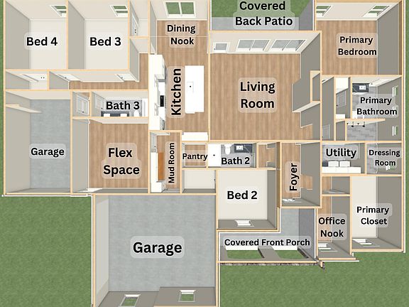 Welcome to your new oasis of comfort and versatility! This exquisite home offers 4 spacious bedrooms, 3 beautifully appointed bathrooms, and a flexible layout that includes a versatile flex space and a dedicated office. The crown jewel of this residence is the large and inviting primary suite, designed for relaxation and indulgence. It's your perfect retreat after a long day, offering ample space and luxurious amenities. This home harmoniously blends functionality with sophistication, making it the ideal space for you and your family to thrive. *Home is currently Under Construction, estimated completion Spring/Summer 2024*