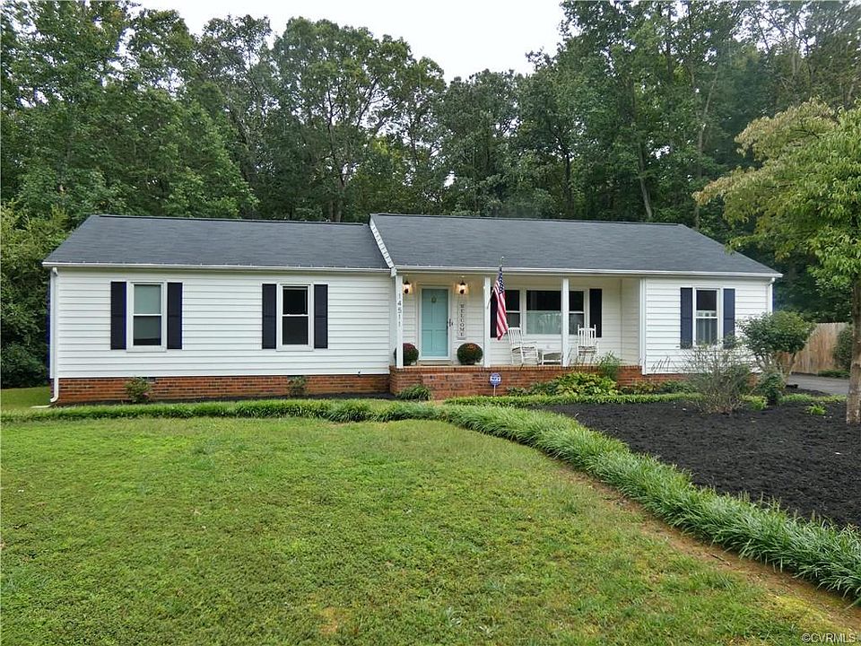 Welcome to 14511 Charlemagne Ct. SO MUCH TO SEE In This Beautifully Updated Three Bedroom Home Located in a Highly Sought After Midlothian Private Neighborhood! LOCATION! LOCATION! LOCATION! One Level Living with Low-maintenance white vinyl home with black shutters and adorable teal door on a Large Well-Manicured lot. Walk into the foyer and notice Freshly finished hardwood floors and fresh paint through the house. Seated to the right is a large living room with lots of natural light that walks into a formal dining room. The renovated kitchen features new Stainless steel appliances and fixtures. Off the kitchen is the Spacious Den with an inviting Brick Fireplace. The home includes three spacious bedrooms, including a Master bedroom suite with a private bathroom. Other features are a detached Two-car Garage, laundry room, 2017 roof, 2019 HVAC, BRAND NEW water heater, newer windows, huge walk-up attic, spacious poured concrete driveway, home situated on almost a half-acre lot. Easy access to West Chester Commons & Rt.288 plus sought after schools. Take a tour today and Fall In Love!