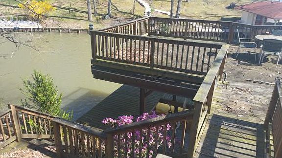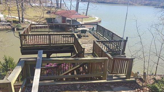 Island like WATERFRONT lot! Panaramic View! Cedar Cabin with OPEN FLOOR PLAN! GREAT Room with Brick Fireplace!, 2 bdrms 1 bath, Sunroom !LOTS OF WINDOWS! 982 ft of Deck overlooking Waterfront! 1.18 ac lot! Steel sea wall 400 ft! Covered Boat Dock! WHAT A VIEW! Effingham schools!Note: Possible Furniture pkg available
