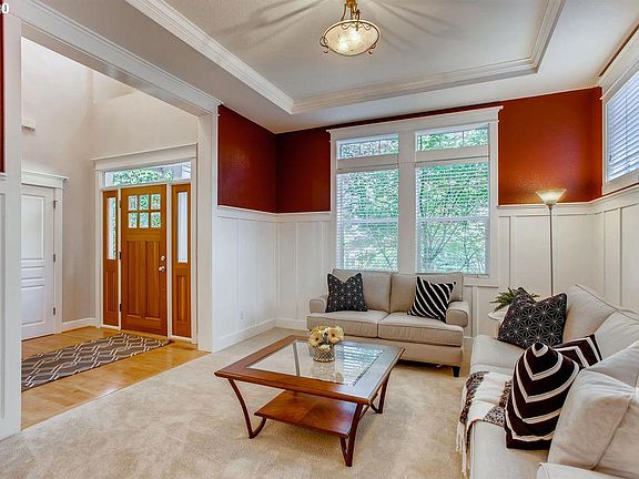 - RoomLivingRoomFeatures: Wall to Wall Carpet, High Ceilings, Wainscoting
