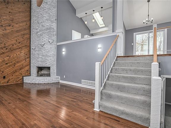 Ascend into this charming home and be instantly captivated by its welcoming atmosphere. The spacious great room serves as a stunning focal point, featuring an elegant, white-washed brick fireplace, striking wood accent wall, and soaring vaulted ceilings. The open-concept design seamlessly connects the kitchen, complete with a convenient breakfast bar, to the great room. The dining area offers sliding doors leading to an expansive 18x10 deck—perfect for outdoor entertaining—with steps descending to a securely fenced backyard. The finished lower level offers versatile living space that is great for entertaining or could be a 4th bedroom (just finish the already in place closet). The bonus room ideal for a workshop, home office, or workout room. Recent updates include fresh exterior paint, new carpet throughout the home, newer interior paint, some updated fixtures, updated kitchen, and updated hall bath. Located in a prime area, this home is a short distance to beloved community amenities including Sar-Ko-Par Park, Lenexa Aquatic Center, schools, library, and shopping destinations.