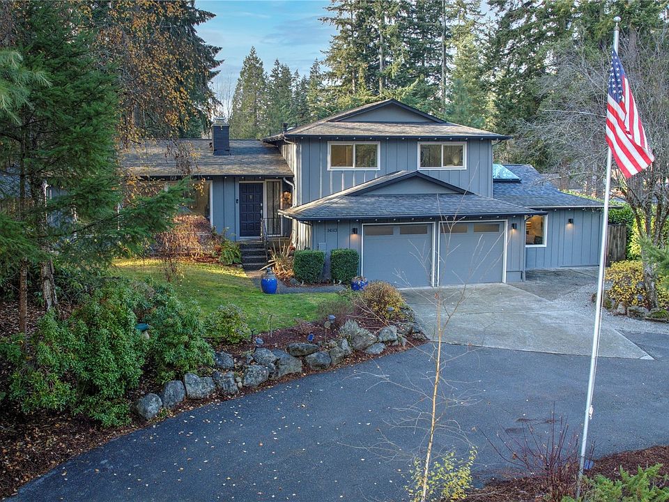 Very private & park-like setting in Briarwood located on ¼+ acre lot w/ a circular driveway for guest parking/RV/boat + 2-car garage. Tri-level home is beautifully updated w/ luxe modern touches & fixtures featuring NEW: interior & exterior paint, carpet, LVP flooring, full kitchen remodel, bathrooms updated, outdoor deck & stairs, skylights, windows, lighting, & more! Home boasts 3 beds/3 baths w/ bonus & family rooms in lower living or opt. 4th bedroom w/ updated ¾ bath. New kitchen has quartz counters & backsplash, shake cabinets, & new SS applcs. Dining room opens to living area w/ wood-burning FP. Fully fenced yard w/ dog run area. Home backs up to county land. Issaquah Schools! Walk to Maywood Elementary & 1 mile drive to Liberty H.S