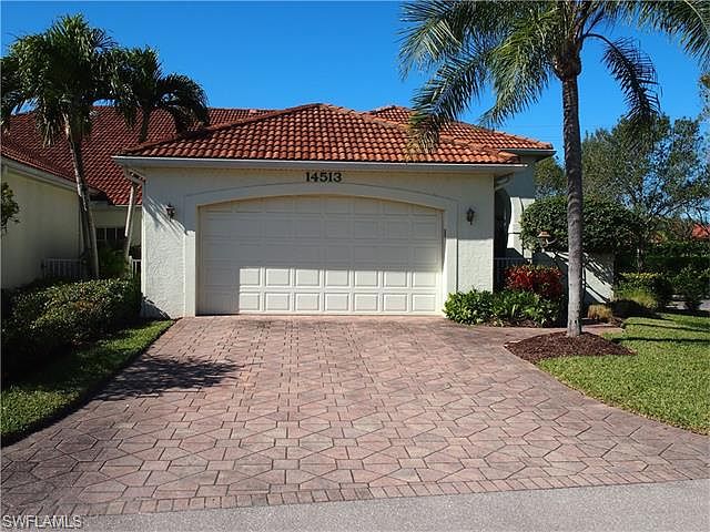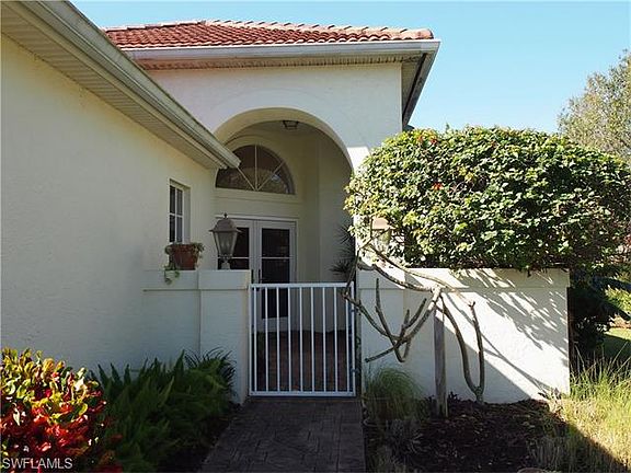Come see this lovely end unit villa in the desirable Waters Edge community. This villa is completely turnkey so get away from the snow and vacation in paradise. Close to Fort Myers Beach, Sanibel and Captiva so go and enjoy the gorgeous sunsets. Notice the imported Italian tile which is beautiful and in a very intricate design. The glass front door has a special security feature making it safe as well as attractive. There is a large island in the kitchen and all appliances including washer and dryer convey. Pavered driveway, walkways and a tiled roof make a wonderful impression as you drive up. The unit is surrounded by mature landscaping and you will enjoy having a large palm tree in your front yard. Soft decorator colors enhance the beauty of the unit. Both the master and second bedroom are large and the third bedroom makes a very nice den as well. Lots of windows and arches add so much light. There is a screened entry and lanai for those wonderful Florida breezes. Waters Edge has a fantastic marina, two pools and tennis courts. A new pavilion was built by the river for community gatherings. Come experience Florida living at its best!! You won't be sorry!!