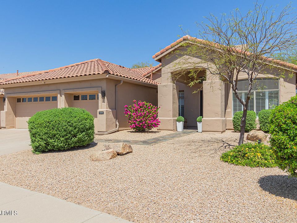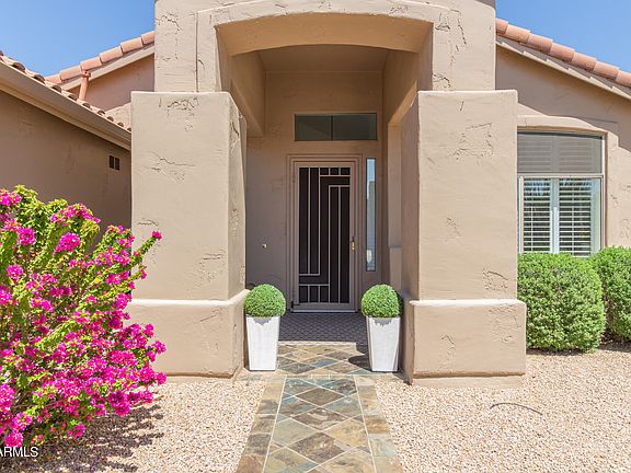 This updated beautiful, LIGHT and BRIGHT, single level home in prime North Scottsdale has great curb appeal and is move in ready. Featuring 4 bedrooms, 3 full baths and a 3 car garage with a new water softener. An open great room with vaulted ceilings and a gas fireplace completes this beautiful space. The kitchen has new granite counter tops, stainless steel appliances , new lighting and plantation shutters throughout the home. A Stunning Primary suite with vaulted ceilings, seating area, re modeled bathroom with new vanities, light fixtures, tile, SOAKING TUB and flooring. The private resort style backyard has a covered patio, built in barbecue. pebble tech pool w/ waterfall. Private and peaceful for entertaining family and friends. Close to shopping, restaurants and golf. VIEW TODAY