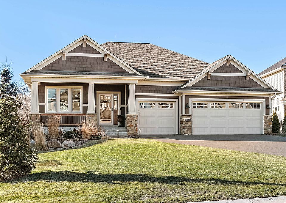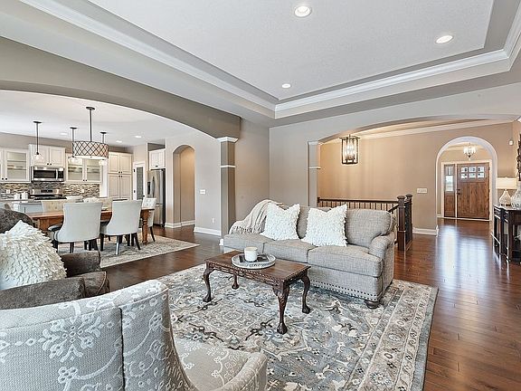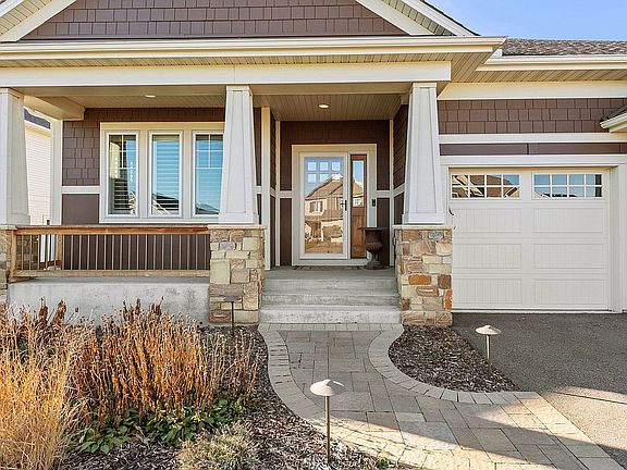 Better than New Construction! Welcome home to this like-new rambler! This walk-out rambler comes with all the bells and whistles. Spacious, light-filled, thoughtful floor plan with all finishing touches you have been looking for. Upon entering you will notice the beautiful architectural detailing from coffered ceilings, archways, 3 season porch overlooking a private backyard. The main level features office, an owner's suite with comfort height vanities, walk-in shower, an open and light-filled kitchen as well as main level laundry. Walkout lower level is an entertainer's dream with a full wet bar and space for a pool table and seating. Two lower-level bedrooms with plenty of space for storage.