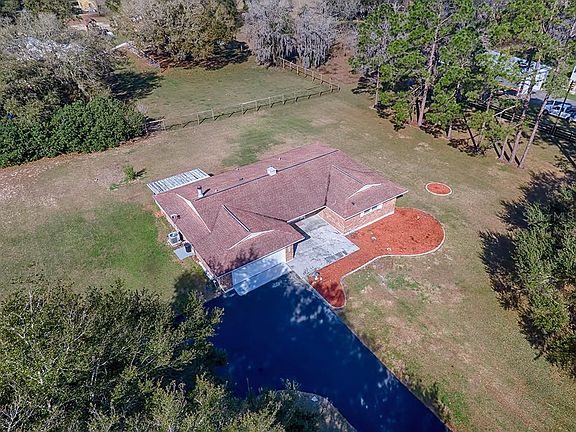 You will think you walked into a new home. Entire interior of home is new: Includes Ceramic tile and Laminate flooring, total kitchen w/42" cabinets w/self-close drawers, granite in all wet areas of home, new Samsung appliances, new fans and light fixtures, all new double pane fiberglass windows, new doors, new hot water system, new A/C 2019, crown molding in main areas. Kitchen includes 2 breakfast bar areas & bar area w/wine cooler. Eat-in area/family room has wood burning fireplace, french doors leading to screened lanai, built in storage cabinets w/pull out for extra storage. Master bathroom has total renovation w/large walk in shower & swinging glass door, double sinks are an extra. All new paint inside and outside. New soffets/facia around outside of home. Extra large garage w/washer & dryer, pull down stairs to floored area of attic for storage. All this on over 1 acre of landscaped corner property within 1 block of a private deeded lake access w/boat ramp on Lake Weir. Roof was replaced w/architectural shingles in 2003, but looks much newer and is in great condition. Nothing left for you to do, but move in and enjoy life.
