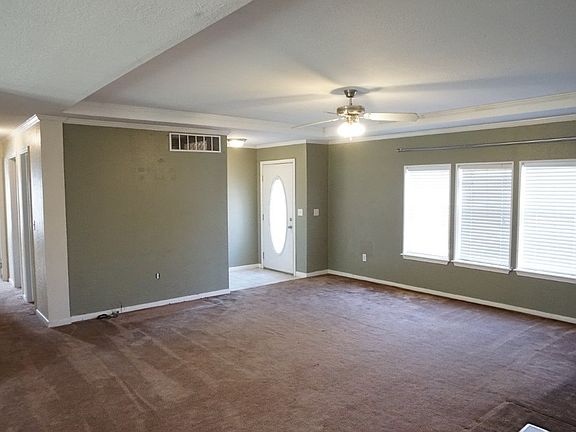Looking for a country home? This 4BD/2 full & 2 1/2 bath home offers amazing space! Split floor plan for privacy, the master en suite has freestanding soaking tub, walk in shower and large walk in closets. Wood burning fireplace in the family room that opens in to a galley kitchen with breakfast bar and tons of cabinet and pantry space; includes a mudroom/utility area. Formal living and dining for entertaining, spacious bedrooms with jack n jill bath, additional bedroom with 1/2 bath. Patio doors to brick stairs and patio with fenced in back yard. Front and side deck, all situated on 5 acres w/outbuildings and storm shelter. **Sellers offering $3,000 in concessions for updates and/or closing costs with competitive offer.