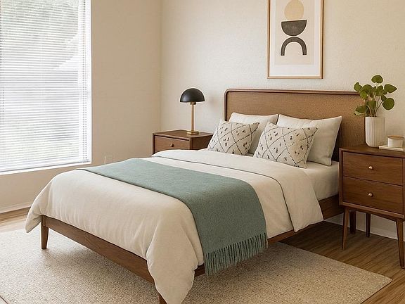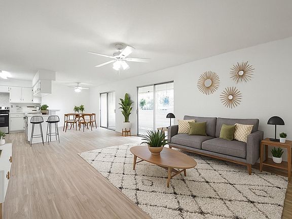 Freshly painted wallsLarge bedroomsSliding glass doorsKitchen with breakfast barExterior balconyMature trees and landscapingBlinds and fans