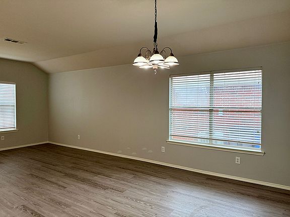 Well-sized backyardStained fenceOpen patioFormal dining roomLarge eat-in kitchenWalk-in closetDual vanities