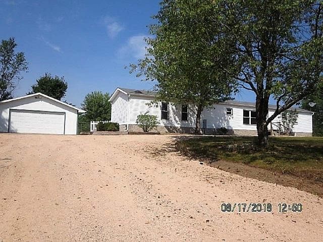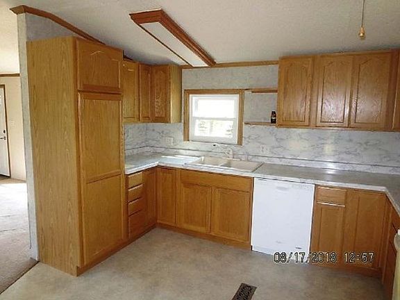 3 bedrooms, split design with open concept. Eat in kitchen and patio door to 16 X 12 deck with view of the country back yard. Vaulted ceilings, laundry area hook up. Master Bedroom with spacious bath and 4' shower. Dishwasher, gas range and refrigerator in kitchen. Living room with view of front and rear yard. 2nd full bath and 2 more bedrooms. 24 X 30 garage with opener and LP gas furnace. Sitting on a slab with Central A/C. Large gravel drive and plenty of parking. No traffic dead end road. Ready to move in!