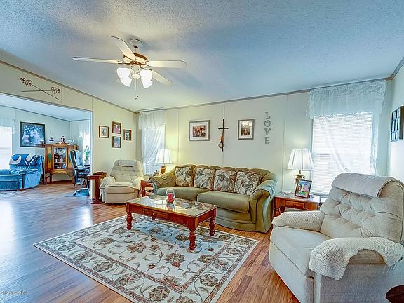 LIGHT AND BRIGHT 2/2 with 1400 sq ft of living space. This spacious home has CERAMIC TITLES AND LAMINATE FLOORING THROUGHOUT (NO CARPETS!), CATHEDRAL CEILINGS, newer A/C, large master bathroom with linen cabinet, and recently UPDATED hall bath. Room to entertain with both a living and family room! Enjoy the beautiful Florida weather in your screened patio in an active 55+ community with pool, clubhouse & pro shop in a 24/7 gated golf community where you OWN YOUR LAND!!