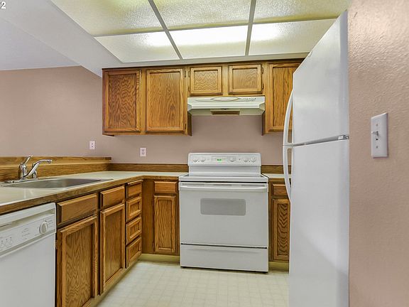 One level condo in Beaverton with a private fenced patio and storage. This one bedroom has a cozy wood-burning fireplace and laminate floors. Come add your personal touches. Great open floor plan- kitchen has a large eating bar, dining room has a slider to covered patio with storage. Refrigerator, washer and dryer are included. Fantastic schools too! Convenient location to Nike, shopping, restaurants and all Beaverton has to offer. On busline, carport is in front of unit. INVESTORS; NO RENT CAP!