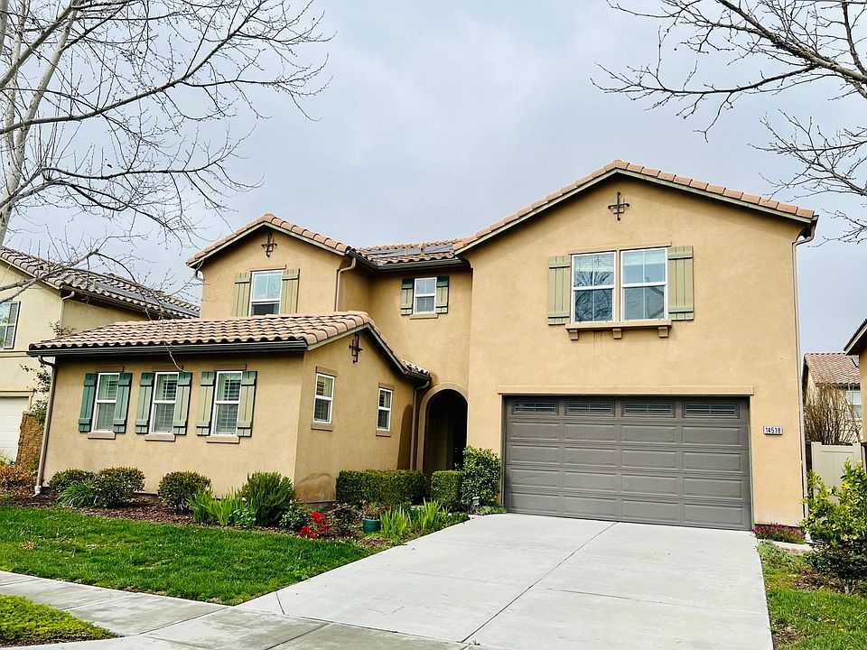 MUST SEE! This remarkable Enclave's premier guard-gated property, located in the heart of Eastvale and close to everything-included neighborhood. This 3,296 square foot house features 5bedrooms, 4.5 baths, and the well maintain HUGE backyard. Water-proof laminate flooring throughout main floor and throughout the second floor, walk-in closet w/ cabinets. One bed and bath downstairs. This solar system building boasts 100% energy start features and significantly reduces utility costs to ALMOST ZERO bills. Community amenities include pool, basketball court, parks, picnic & BBQ areas, & a clubhouse. owner pays for gardening and HOA.