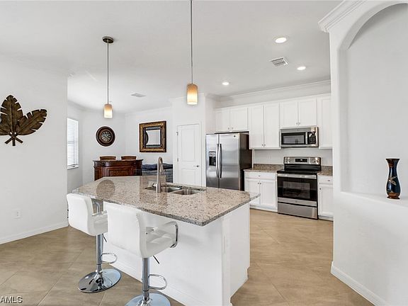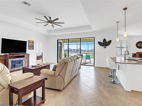 This spacious single-story home features a formal dining room with elegant arched doorways, followed by an open layout among the Great Room, kitchen and Breakfast Nook, with access to a lanai that features a sparkling pool that overlooks a beautiful lake. In addition to the owner’s suite, are three secondary bedrooms and a three-car garage for versatile needs. Portico is located in Fort Myers, a world-class destination that attracts visitors from all over. How lucky to live here and be just minutes from leaving your footprints in the white sand beaches, watching the sherbet-colored sunsets, or strolling down the historic streets of downtown Fort Myers overlooking the Caloosahatchee river.