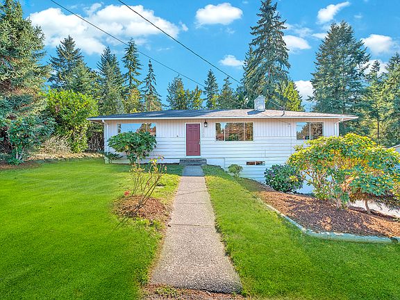 A 2,010 square foot mid-century modern North Renton Highlands home boasts 4 bedrooms, 1 ¾ bathrooms, recreation room, yard, covered patio, basement, 1 car garage and RV parking. The open floorplan begins with the living room- it has laminate flooring and a wood-burning fireplace with stone and tile surround. The kitchen is abundant of counter space with laminate top, dual sink, window overlooking the private back grounds and eat-in kitchen nook, a flex room off the kitchen and a sliding glass door which leads to the entertainment deck. Three bedrooms are located on the main floor. The master suite has two closets and made up of hardwood floors. The full bathroom has plenty of storage space, mirrored medicine cabinet, wall cabinet over toilet and lots of under-counter storage. The recreation area features brand new carpet, white millwork, new paint, and wood-burning fireplace, sitting area, door to the garage, and separate entrance which leads to the patio. The laundry room is abundant of storage, 2 storage closets and storage room with shelving and plumbed for a gas dryer. Other notable features include updated lighting and a linen closet in the hallway, brand new roof, ew laminate flooring, new carpet, new additional attic insulation, new interior & exterior paint, new white millwork, newer gas furnace with electronic air purifier, newly resurfaced driveway, sturdy wood siding, wood-wrapped windows and garden shed.