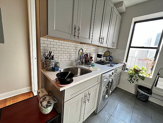 Washer/Dryer in apartment! Rent stabilized apt! Newly renovated, gorgeous, quiet, clean, very bright & sunny LARGE 1 bedroom apartment. Open kitchen, includes new appliances including refrigerator, range, washer & dryer, white granite counter tops, back-splash and 42" Custom made gray cabinets with self closing doors. Bedroom has windows, natural sun light, fits queen size beds, desk & dresser & has large closets with 8 foot solid core closet doors and shelving. Living room & common area includes lots of windows & natural sun light, 2 large closets & storage, floor and chair rail moldings, recessed lighting & intercom. Bathroom includes 20" deep acrylic tubs, 24" solid wood vanity & high grade fixtures including porcelain tiles. Located on the 2nd floor of a walkup apartment building is located on a prime, tree lined quiet block in the heart of Crown Heights near all shopping, boutique stores, restaurants, schools, a short walk to the Brooklyn Botanical Garden, the Brooklyn Museum and Prospect Park and the # 3 & 4 train lines placing you within 20 minutes of downtown Manhattan. * CCTV Video cameras & access control system for both the front & vestibule doors * Recessed lighting * common area large closet * Heat, hot water & cooking gas included * Guarantors are accepted nationwide! * Rhino accepted 1452 Carroll Street, Apt. #D is available OCTOBER 1 directly from the owner for $2,495 NO FEE #brooklyn #nofee #apartments Lease can end in the summer 2023! In person showing by appointment. Please contact us to arrange in person showing and/or for more info on this and other no fee apartment available directly from us the owner. We are the property manager/owner of the building - NO BROKERS FEES - Owner direct! Follow us twitter/ownernofee All square foot #'s are estimate