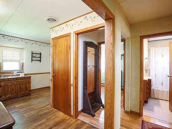 The serenity of the country with the convenience of nearby city awaits you in this cozy home on 1.45 acres. Hardwood floors throughout, solid wood kitchen cabinets built by Hartland Planing. Two bedrooms with potential for 3rd. Has well water with city water available. Great flat yard with lovely grape arbor; oversize open end garage to fit a camper or use as outdoor entertainment space, plus 2nd detached garage. One level living with laundry in garage. Sit on the patio and enjoy your coffee or relax in the swing on the back porch. Don't wait! This one will go fast! See Agent Remarks