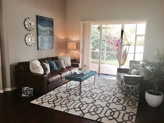 Split floor plan with an incredible 'cook's kitchen'. Notice the high ceilings and open floor concept, dining room, formal living room with hardwood floors throughout with tile in kitchen and bath. Large walk-in shower in master! Conservation across the street and behind. Porch and covered lanai.