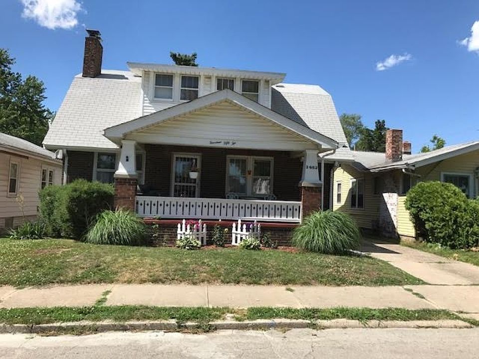 Charming brick bungalow close to St. Mary's Hospital and Eisenhower High School. Unique master bedroom with a master bath. Gorgeous darkwood moldings in LR & DR. You will love the open staircase to the upper level.. The large living room has a brick wood burning fireplace. Lots of storage. Covered front porch, 1.5 detached car garage and a full basement. The kitchen has a tiled ceiling, pull out shelving and a very nice stainless steel refrigerator.