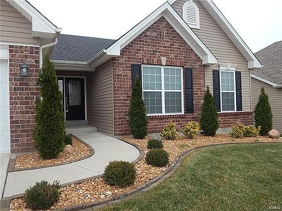BRAND NEW ranch in the fantastic Hampton Woods community. This open plan has 3 bedrooms, 2 Baths and 1,948 square feet of living space. This quality T.R. Hughes home is loaded with features: Vaulted Entry-Great Room-Kitchen-Breakfast Room, Fireplace, laminate wood floors in the Great Room-Entry-Kitchen-Breakfast Room, staggered height 42 inch cabinets with crown, Kitchen island with breakfast bar, stainless steel appliances, brushed chrome door hardware and more. The Master Suite has a 4 window bay, coffered ceiling, double bowl raised height vanities, 5 foot shower with seat, linen closet and a HUGE walk in closet. The low maintenance exterior has partial brick, 3 car garage with opener, coach lights, vinyl siding, enclosed fascia-soffits, 30 year architectural shingles and a sodded front yard. There is a walk out basement with windows and bath rough in for an easy future finish. Wonderful neighborhood with center playground and sports court just steps away. Easy access to schools, shopping and dining on nearby Hwy K and Main St in O’Fallon.