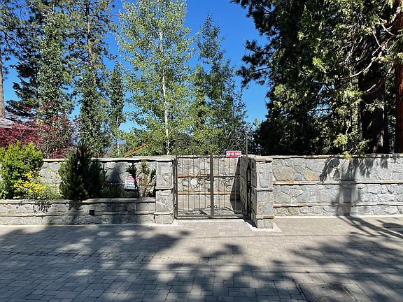 This one-of-a-kind property boasts a beautifully landscaped environment with a striking European granite stone fence, picturesque waterfalls, and a spacious, handcrafted stone parking area, including a garage. Enjoy your very own private sandy beach, featuring white sand unlike most Tahoe beaches, which are rocky and shared. Additionally, the property includes a private dock with buoys for two boats, ample parking, and breathtaking direct views of the lake and its stunning sunsets.