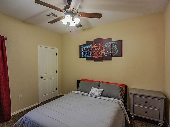 Pristine 3 bedroom home located in the Hermoso El Sol subdivision offering a "gated" feel w/ only one entrance/exit. Palm trees welcome you into this well maintained property. Tile floors in the main areas, carpet in the bedrooms. The kitchen is trimmed w/ granite counters, stainless steel appliances & pantry too. Enjoy the view of the grassy back yard & covered patio from the living room. The master brings 10 ft ceilings & the master bath is flanked w/ double vanities, jet tub & walk in shower. 3D tour!