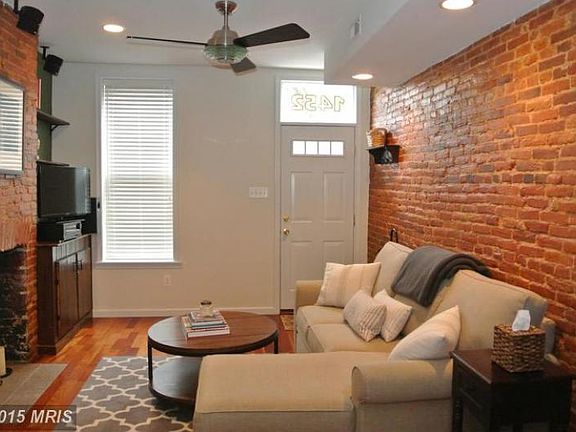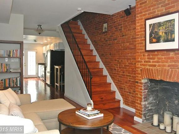 This home, located in a prime block of Locust Point, boasts updated white kitchen with stainless steel appliances, and Italian river rock granite. Other features include custom lighting, exposed brick walls, and Brazilian hardwood flooring. French doors from kitchen lead to private rear patio. Walking distance to Latrobe Park, Federal Hill, downtown. (Fireplace is decorative only).