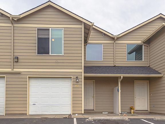 Turn key townhome style home in SW Redmond adjacent to Baker Park. All new flooring & paint this spring & exterior is maintained by the HOA. Great find for the investor, part time Central Oregonian or someone seeking low maintenance! Covered front west facing entry way, dedicated parking & garage. Engineered wood look flooring in neutral tones, beautiful tile floors in the baths & pleasing cream walls. Main level offers an ample kitchen, dining & living areas & half bath + laundry. Upstairs you'll find a Master Ste overlooking the back courtyard, a spacious second bedroom & a bonus den or storage room. Guest bath upstairs features a tub/shower combo & lg vanity. In living space there is a cozy gas burning fireplace, sliding glass door opens to a semi private patio & green space. Conveniently located near amenities, easy access to the parkway & just blocks from the Dry Canyon. Don't miss this one!