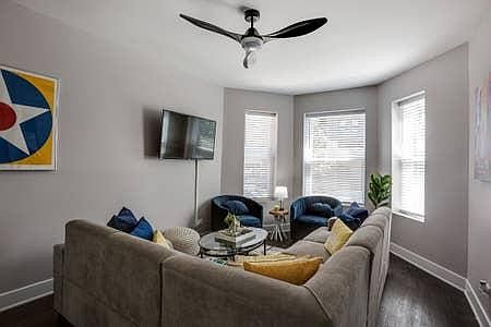 BLAINE SCHOOL DISTRICT - Beautiful brand new 5BR/4BA duplex condo in Wrigleyville / Lakeview / Southport Corridor with a large open concept living area / kitchen and beautiful shared outdoor living space. Second large living room downstairs with a dry bar and beverage center. Garage parking available for an extra charge and free street parking available in front of home. Steps away from Southport Corridor. Go to the Loop in under a half hour from the nearby Sheridan Redline or Irving Park Brownline, and walk to Wrigley Field and bars in under 10 minutes. Hardwood floors throughout, quartz in kitchen and bathrooms, 42 inch cabinets in the kitchen, washer/dryer in the unit, central air. Bright spacious living space with 9 feet ceilings. Blaine School District - Steps away from #9 and #22 Bus. Please schedule a showing. Act fast! Available for May 15 or June 1 leases with option of early move in for no extra charge to avoid lease overlap. **Pictures are of a similar unit** Landlord pays water, sewer, and trash. Tenant pays electricity, gas, and cable/internet. Garage spot available for additional cost per month. One time move in fee and application fee required