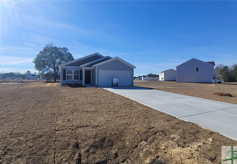 The Brunswick home includes 3 bedrooms and 2 bathrooms. Immediately inside the entryway is a flex space. The kitchen connects the free space to the family room. The primary bedroom and its walk-in closet are just off the family room. Two spare bedrooms share a second bathroom, and a laundry room is just inside the two-car garage.