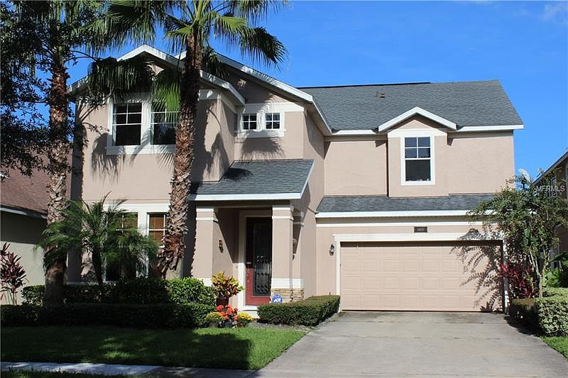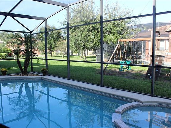 Beautiful two story home features 5 Bedrooms PLUS BONUS ROOM, 3 Baths and large screened pool with dining/sitting area, 2 car garage + Tandem . Walk through the door and take notice of the bright airy feel and high ceilings, Master retreat located in the second floor showcases cathedral ceilings, the Master Bathroom has garden tub, shower, his and her sinks and a big walk-in closet. Upstairs hosts three bedrooms with walk-in closets and spacious double sinks full bathroom and a big and open bonus room will give you endless choices to use it. Open kitchen with Custom Wood Cabinets, granite counter tops and stainless steel appliances. Spacious eat-in bar opens to a huge family room, downstairs guest bedroom and bath is conveniently located off of the family room and provides access to screened pool and spa that offers a cover lanai. The back yard is spacious and the playground adds fun to your summer afternoons. Home is located in "A" rated schools, biking distance to the elementary school and just miles away of restaurants, shopping areas. SOLD "AS IS".
