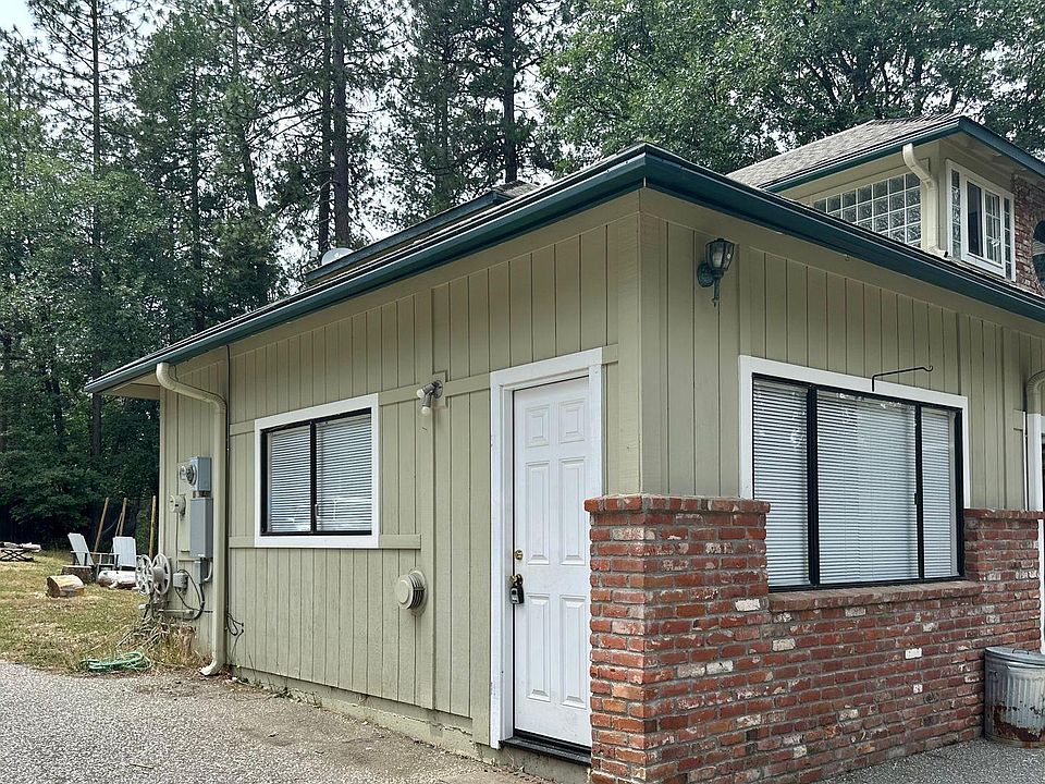 Wonderful property on over 5 acres with stream and pond. Private, quiet and a short drive to downtown all paved. Main house is a 2400 sq ft 4 bedroom, 3 bath contractor/owner built home. Everything was built strong and sound. Home has a formal dining room and two living rooms. One living room has a gas stove and one room has a wood fireplace. Large deck overlooks pond and beautiful mature trees. Master bath has attached atrium. New carpet upstairs and living rooms. Tile floors in hall, kitchen, and dining room. Central Heat & Air. 2 car attached garage. Laundry room with hookups for either propane or electric. Kitchen has propane stove, dish washer and lots of storage. Attached 280 sq ft Care takers quarters with separate entrance. This is a studio unit with kitchenette, no stove, laminate flooring and bathroom with shower. Lots of sunshine. Second home is 1200 sq ft upstairs with two bedroom and two bath. Open floor plan with propane fireplace. Let your family enjoy living with you without sharing a home. Downstairs unit is 600 sq ft with two car garage and storage shed. If four units isn't enough room there is also a 1200 sq ft shop with 400 sq ft office upstairs. Shop was built for a mechanic painter. One side built as a paint room. Driveway is paved all the way to the home. There is plenty of room for your horses or goats. With its own ag power pole. Many possibilities for land use.