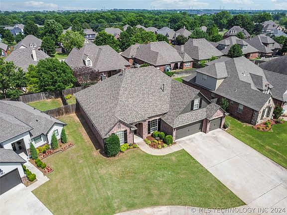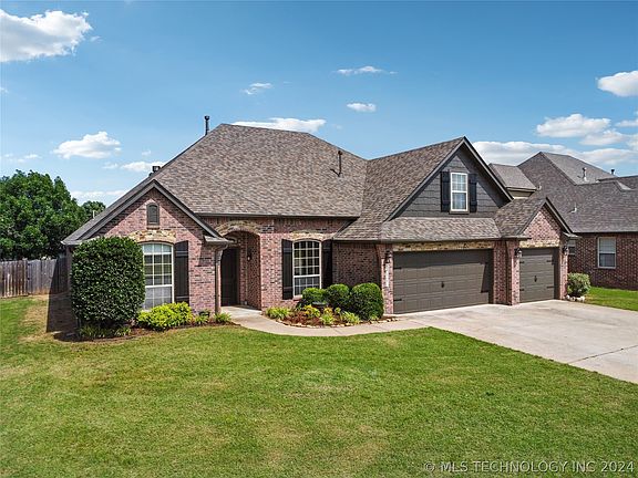 Beautiful home in the desirable Bixby West school district! This home features a sought-after floor plan with 3 bedrooms downstairs, an additional bedroom upstairs, 3 full bathrooms, a kitchen nook, a formal dining space and an office downstairs. The spacious kitchen has granite counters, a walk-in pantry and plenty of cabinetry for storage. The large living room features a cozy fireplace and a wall of windows, filling the space with natural light. The primary closet is connected to the utility room making laundry a breeze. The neighborhood amenities are unbeatable! Take a dip in the refreshing swimming pool, enjoy a leisurely stroll on the trails or try your hand at fishing in the fully stocked catch-and-release ponds with picturesque fountains. Basketball courts and a playground offer even more opportunities for outdoor fun and relaxation.