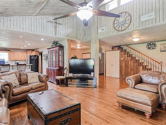 Country roads take you home to your own five acres with a 30 X 50 shop and pool. Nice 4 bedroom, 3 bath home with updated kitchen, granite countertops and updated flooring. New wood burning fireplace in living area, vaulted ceilings makes the home open and a kitchen lovers dream with plenty of cabinets and space to prepare. Kitchen is open to the living area, perfect for entertaining family and friends as well as the covered back patio area with a view of the pool and backyard. All four bedrooms and closets are nice sized. Heat pump with a unit upstairs and one downstairs. A couple of storage buildings along with a 30 X 50 shop with concrete floor, electric and 3 overhead doors. As Is listing. Buyer to verify all information.