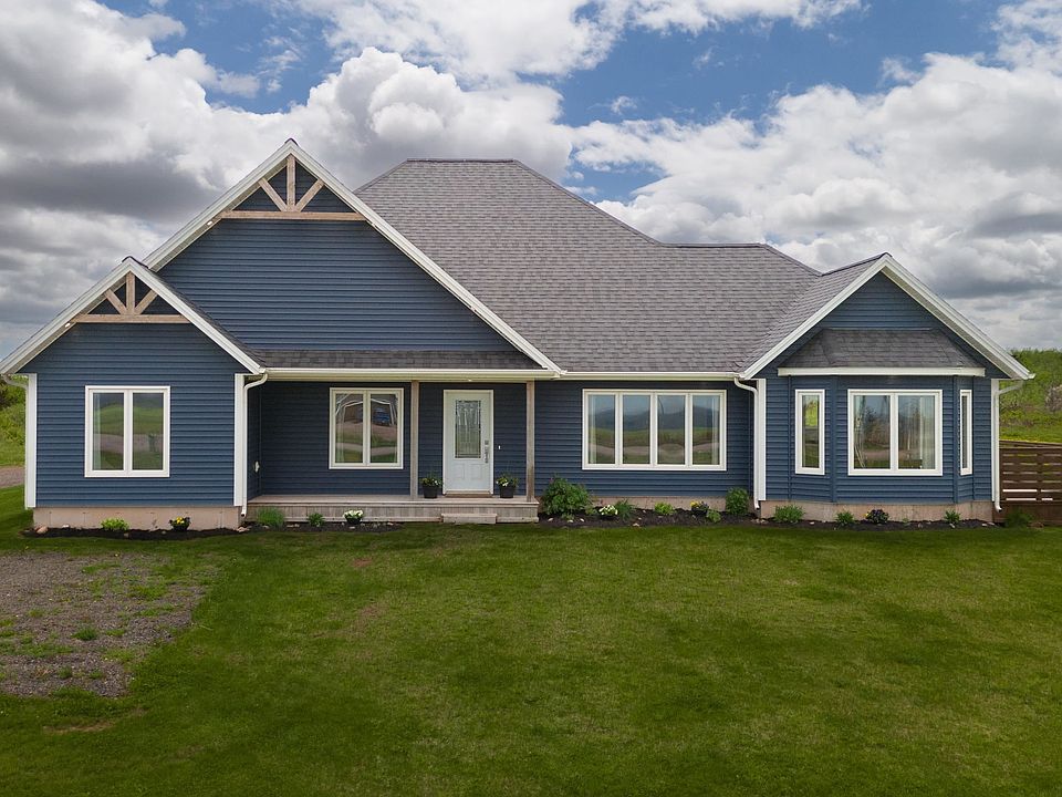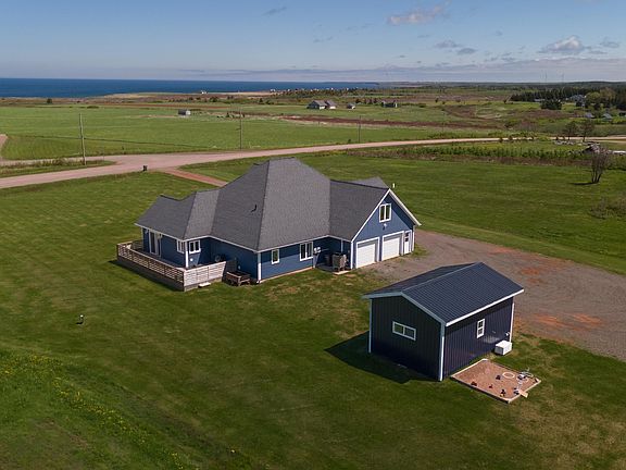 Prepare to be captivated by stunning panoramic views of the ocean and windmills, from sunrise to sunset. This nearly-new, four-year-old home sits on just over 30 acres of land and was meticulously designed by the owners with functionality, style, and sustainable living in mind. The abundance of triple-pane windows and strategically placed double sliding doors bathe the home in southern sunlight. Step inside and be impressed by the high-end finishes and the seamless flow of open-concept living. The main floor boasts a welcoming entryway and a dedicated office. The spacious living room features large windows, while the dining area leads to a large deck through double sliding doors. The kitchen features ample cabinetry, counter space, and a large movable island with a quartz countertop. Additionally, there's a dream pantry with more counter space and tons of storage. A dedicated storage room provides plenty of space for extra belongings. The laundry room has a countertop to fold and organize clothing, as well as a clever feature: a small door for easy clothes transfer from the primary closet. The primary bedroom features a walk-in closet and a gorgeous en suite bathroom. At the other end of the main floor, two generously sized bedrooms, a full bath, a large linen closet and a spacious room for outdoor clothing and gear complete this level. A bonus room above the garage can be used as another bedroom or a spacious recreation room. The large double garage boasts an electric furnace that provides in-floor radiant heat throughout the home. Additionally, there's York Central air cooling and heating with individual controls for each section of the house. The property is prepped for the addition of solar panels and a generator. A large outbuilding with a 100-amp electrical board is roughed in for a heat pump. Just a short drive from the charming town of Tignish, offering all amenities with welcoming small-town atmosphere.