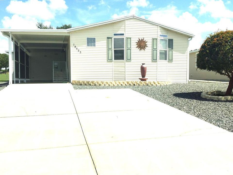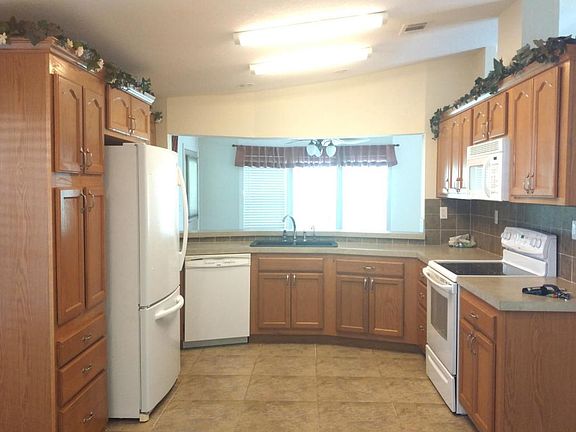 Golf course home, with easy yard maintenance thanks zero-scaped stones in front and AstroTurf in back plus covered patio with course views. Open, flowing floor plan with thermo windows and plantation blinds. Porcelain tile floors throughout, thicker plywood underneath with textured drywall and extra insulation. Inside laundry area, with upgraded lighting fixtures and comfort height toilets. Double driveway with carport and large storage shed attached with 220 electrical box.
