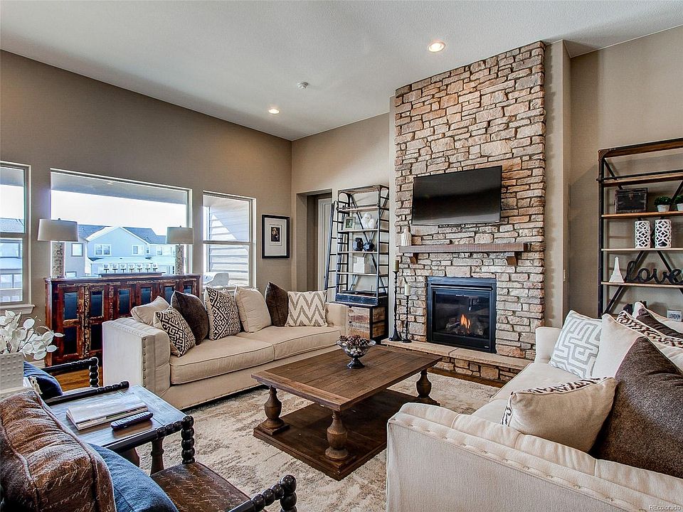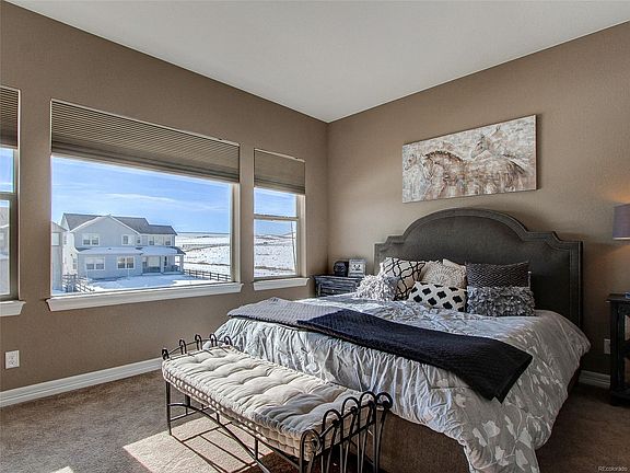 Beautiful ranch with finished walkout basement boasts over 4,500 square feet, sits at end of private cul-de-sac & backs to greenbelt, is full of upgrades & shows like a model! The open floor plan includes a chef's kitchen & oversized center island. Main floor master with views of open-space, large shower, walk-in closet & his/her vanities. The upper covered deck is has a gas line ready for fire pit or outdoor kitchen. The main floor includes a study, guest bedroom with full bath, large laundry room & 1/2 bath. The huge finished walkout basement has double family room areas, wet bar/kitchenette with full size refrigerator hook ups, bedroom, full bath, plus plenty of storage space & future expansion area making it perfect for a mother-in-law apartment or entertainer's dream. The covered back patio opens to the fully fenced & professionally landscaped backyard. Close to great bike trails & parks, easy access to I-25, light rail & walking distance to the new Parker Reservoir.
