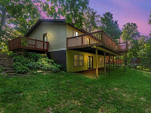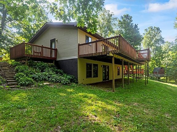 Secluded Ranch home with open floor plan!! The oversized living room, kitchen and dining area with vaulted ceiling overlook the beautiful, wooded area! The first level has 2 bedrooms and a bathroom with double bowl sink. The lower level has the third bedroom, 2nd bathroom room with Jacuzzi tub and family room which walks out to backyard. New carpet throughout!! Roof installed in 2022 and furnace is original. Enjoy your morning coffee or cold drink on the large deck. This is a must see and will not last long!!