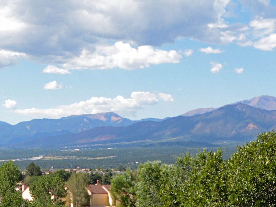 Beautiful custom home on an over sized private lot w/unobstructed Pikes Peak, Front Range & Air Force views. Multiple decks, large side yard with garden area located in quiet cul de sac. This home features 4 bedrooms, 3 full baths and big 3 car garage with an additional space for work shop. Upon walking into this remodeled home, you will find nice tile floors, a large open living room, formal dining room, and beautiful kitchen. The kitchen features quartz counter tops, black appliances and tons of cabinet space. Kitchen offers great extras with under and upper cabinet lights, pull out spice rack and lazy susan shelving. There is also a eat in dining area attached to the kitchen with great view of the Air Force Academy and front range! Upstairs there is 2 bedrooms, a full bath and the master bedroom. Master bedroom features 2 walk in closets, gas fireplace, walk out to private deck and attached 5 piece master bath. On the lower level you will find an over sized family room with walkout to the lower deck & wood burning fireplace. On this level you can access the laundry room, huge pantry and 3 car garage with attached work shop. Down on the basement level, there is a walk-out also with a 2nd recreation room, 4th bedroom & accessible crawl space storage with 700+ sq ft. Move in ready. This house is walking distance to the elementary school & park. Minutes to I-25, the Powers Corridor & shopping! Great find, come see today! NO PET PROPERTY.