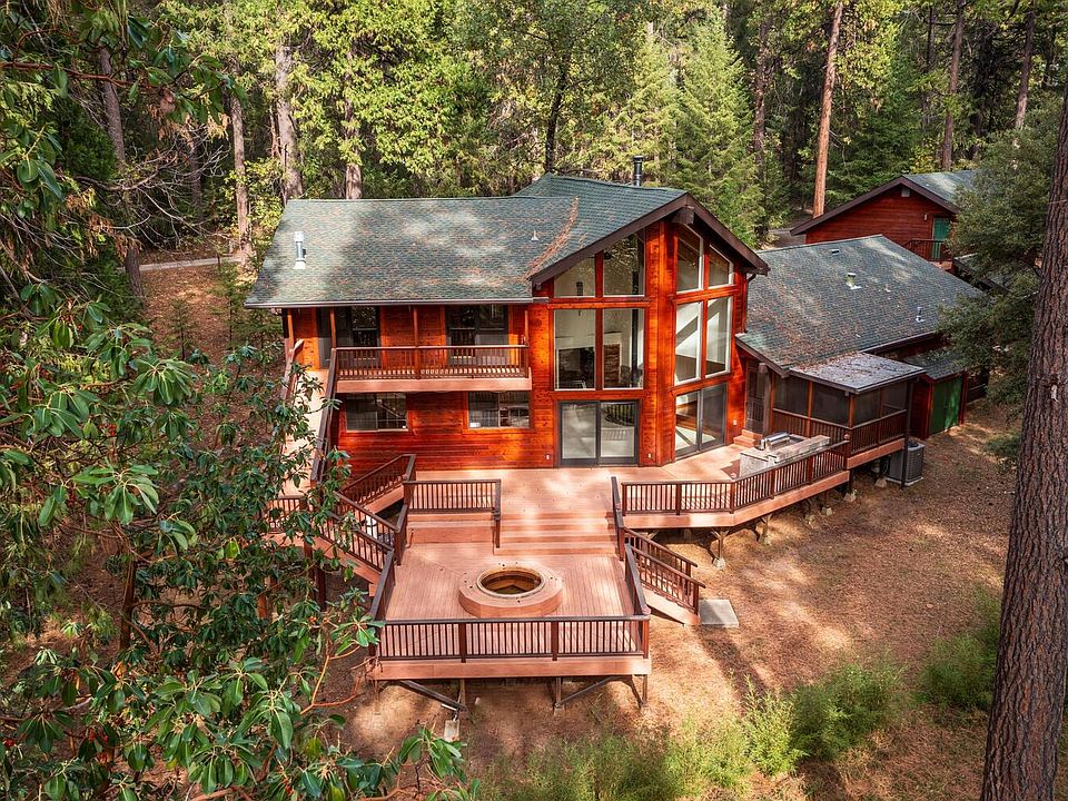 Your dream mountain retreat is nestled in a peaceful & serene setting that offers tranquility while being just 10 min away from charming historic downtown Nevada City and Grass Valley. This home offers expanded living possibilities w/ a 663+/-sf hobby room set up as a second unit w/ above the garage! Spend your weekends at one of the nearby lakes paddle boarding, fishing or water skiing, or explore the beauty of the Sierra Foothills through the many hiking and mountain biking trails that are nearby. Drive just 45 minutes to Truckee / Tahoe for weekend getaways and skiing, or head south to shopping in the Roseville / Sacramento area. Inside the main home you're greeted by soaring cathedral ceilings & expansive Tahoe-style bay windows and sliding glass doors that lead out to the appx 855+/- sf back deck. With its enclosed sitting area & custom-built BBQ, you can host family and friends or simply unwind in peace. As the evening sets in, indulge in ultimate relaxation in the hot tub, gazing at the stars above. For those who desire a comfortable workspace, the home has a spacious, newly added office and high-speed, top-tier internet from Smarter Broadband. Take in the breathtaking forested views that surround you and love where you live at this remarkable retreat in Nevada City.