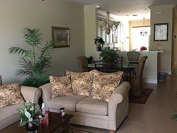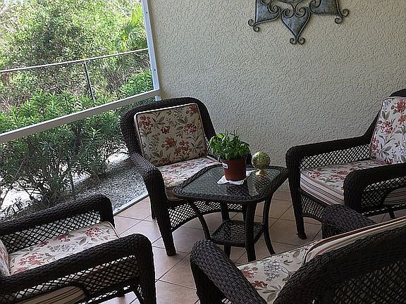 First floor, turnkey unit. (includes furniture and fixtures and HD WIFI hardware and 50" TV.) Amenities: New air conditioner system installed 2/2019. 33k in upgrades, as follows: 1. Tile throughout(including Lanai), with a 3x3 mosaic medallion at entry 2. Showers/tubs completed with upgraded tile 3. Kitchen and bathroom cabinets upgraded 4. Kitchen and bathroom counters upgraded with Corian tops 5. GE Profile Appliances in kitchen 6. Kitchen recessed lighting 7. Four inch molding throughout 8. Crown molding in Great Room 9. Beveled mirrors in bathrooms 10. All faucets (bathrooms) upgraded This unit is in like new condition as it has been mostly unoccupied. Square footage includes a tiled and furnished lanai (121 sqft) .