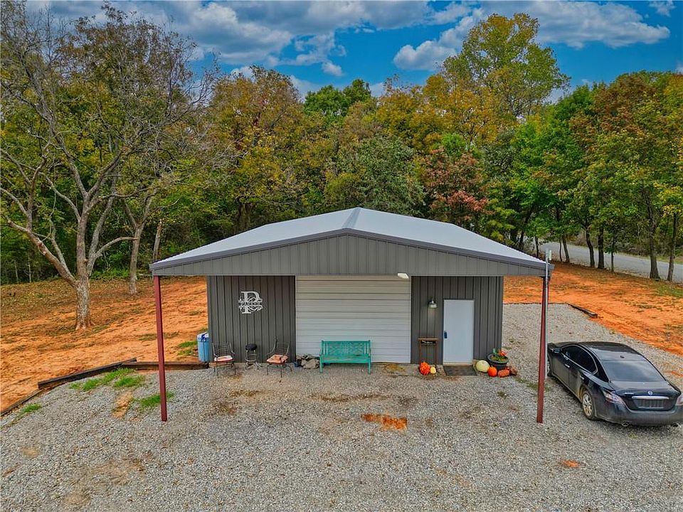 10 acres with lots of trees, a creek and a charming Barndominium. This studio like barndo offers a downstairs sleeping space as well as a loft, complete kitchen and one full bathroom. With room to adjust the living space to fit your needs this is a lovely cozy space. The property offers plenty of room to enjoy nature and observe wildlife while not being too far from highway access. Located 15 minutes from Purcell the quiet rural area is sure to impress. This is the perfect start to your barno home!