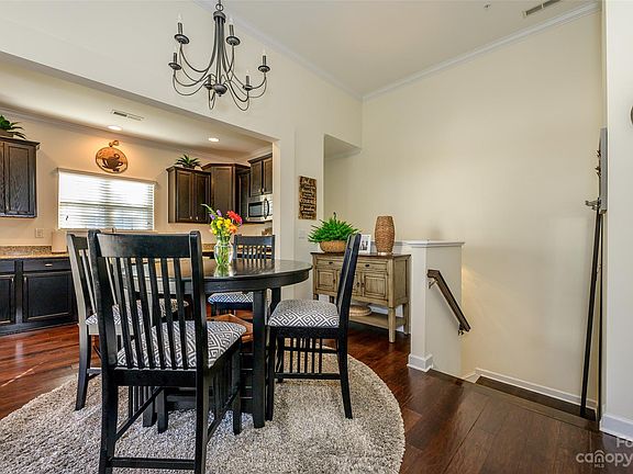 Location, Location! Minutes to shops, restaurants, entertainment & all that Ballantyne has to offer. Welcome to Riviera an elegant condo community. The Hoa includes community pool, water, sewer, trash & exterior maintenance. Step inside from the covered entrance to a meticulously maintained, original owner end unit. Beautiful hardwoods continue up the stairs & accent the main living areas. Soaring high ceilings & crown molding highlight the neutral finishes throughout the open living room. Prepare gourmet meals in this fabulous kitchen with new gas range, and dishwasher, granite countertops, an island, and rich cabinetry. All stainless appliances will remain. Enjoy morning coffee on the private balcony. Spacious secondary bedroom & full bath. Continue down the hall to a convenient laundry room with a newer washer & dryer to remain. Retreat to your naturally lit primary suite with a trey ceiling and walk-in closet. The primary bath has a separate tub & shower. Welcome Home!