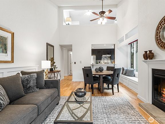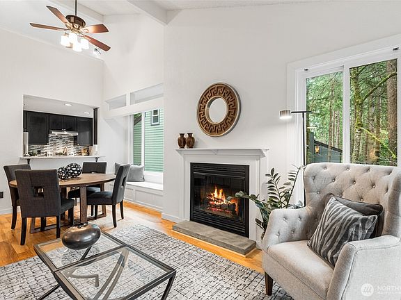 This beautifully updated top-floor condo offers the perfect blend of city convenience and a peaceful wooded retreat, just across from Microsoft’s campus. Thoughtfully renovated with modern finishes, soaring vaulted ceilings, an open-concept layout, plus a cozy fireplace. The spacious primary includes a private en-suite bath, while two additional bedrooms provide flexibility for guests, home office, or creative space. The updated kitchen flows seamlessly into the living area, while the bathrooms have been completely redesigned with high-end finishes. Flooded with natural light showcasing the serene, tree-lined views. Private deck to take in the beauty of the wooded surroundings. Storage, deeded parking, sparkling pool and clubhouse.