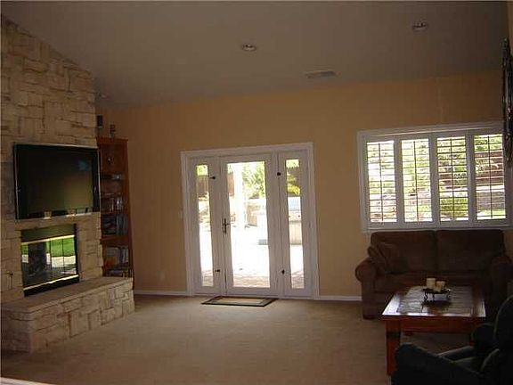 <strong>Rarely available 1+ Acre Parcel with great mountain views and private backyard, with 2005 SF home 4 bed/2 ba. This home has been newly painted inside and out. New Hardscape just completed: Beautiful pavers were installed at driveway front entrance, front porch, walkways, back patio, retaining walls, elegant unique flower beds and garden area ready for spring planting. Front Entrance has circular paver area ready for your choice of fountains. Brand new lighted gated entrance with key entry has been installed. Rose Garden is in full bloom, along with mature fruit trees ready for picking. Front entrance is lined with trees for privacy wall. Backyard is private with beautiful landscaping with Palms and lush grass area, complete with entertaining area barbeque island/seating and refrigerator also a large SPA rarely used and propane firepit. RV & Boat Parking no problem, Tool Shed matches the house and dog run is in. This is a Quiet cul-de-sac location with 4 homes close to elementary school. Home has lots of windows, natural light is great, familyroom has built-in bookcases, flat screen TV does not convey. Fireplace is two sided and can be enjoyed from the familyroom/livingroom/dining room and Kitchen area. Single French Door w/Side Lights lead you to the patio area. Breakfast nook looks out over expansive frontyard and mountain views. Plantation shutters and recessed lighting are great features included along with master crown moulding and mood lighting. Everything done to this property was with the intent to last (quality workmanship). Owners have logs of all plantings. Backyard wood fencing is high quality from Indonesia.</strong>