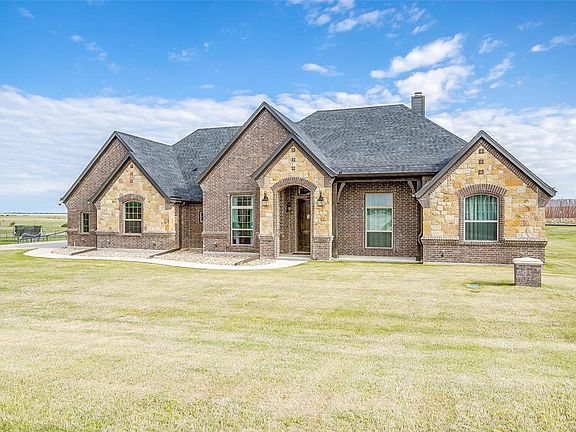 Stunning home with upgrades galore! This home backs up to a working cattle ranch. You can sit on your screened-in back porch with a crackling fire beside you, sipping on coffee while watching the cattle graze on the rolling hills. The kitchen boasts a humongous island, has a gas cooktop and beautiful countertops. Walk straight over to your custom eat-in kitchen with matching built-in dining. The kitchen & dining areas have blue backdrop lighting, setting an intimate glow. Hand-scraped wood flooring in the living, with a matching wood mantel and wood beams on the ceiling. The fixtures are exquisite and timeless. Located in Godley ISD. Don't forget to check out the 3D virtual tour in the listing!