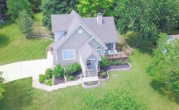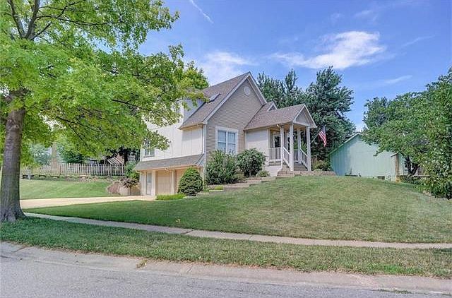 Adorable Lenexa home w tons of personality! 2yr new roof/driveway PLUS James Hardie siding w 50yr warranty! Nestled on quiet culdesac across from 2 parks/play area. Lrge mster w added sitting rm/loft. Remodeled kit, lrge laundry & finished w/o LL w rec room. 2 bdrms on main level. Wet bar in great rm also on main level. Relax on your stamped patio OR the front deck overlooking the parks!This home is located in great area w easy access to highways/shopping. Don't miss this one! This home has so much to offer!!