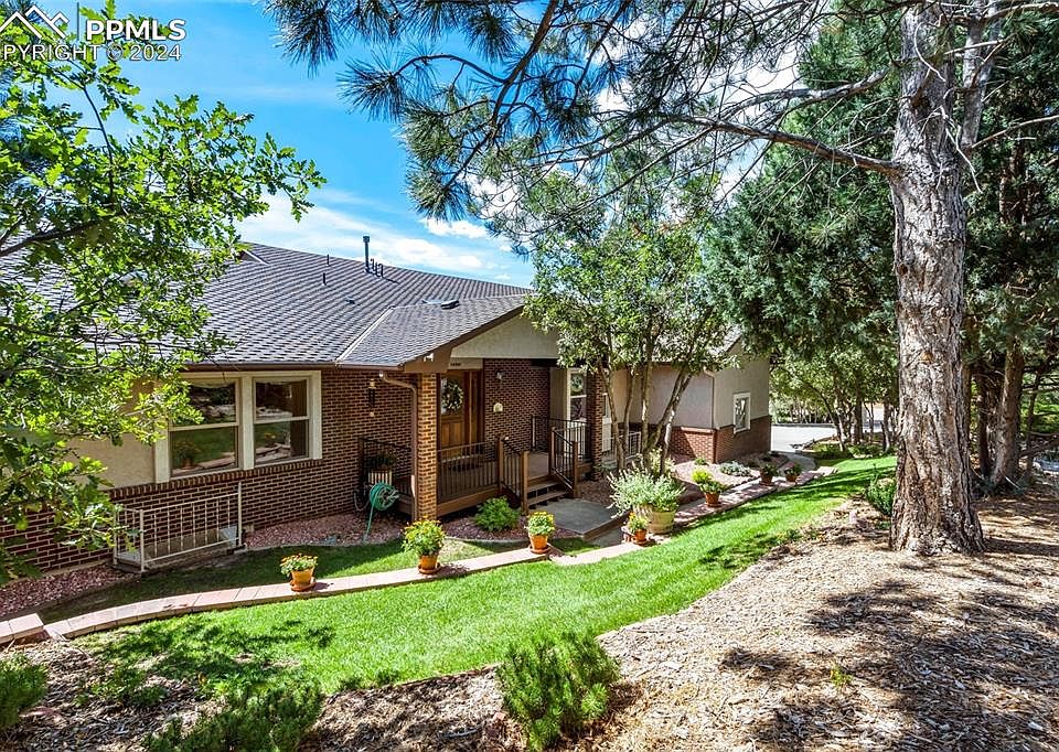 These views of Pikes Peak and the USAFA over the open space cannot be beat! Offering opportunity for multigenerational living with ample space this stunning property boasts 6 bedrooms and 4 bathrooms. Situated on a cul-de-sac, surrounded by lush trees and meticulously landscaped gardens, it exudes charm and tranquility. As you enter, you are greeted by vaulted ceilings and an abundance of natural light streaming through skylights, creating an open and inviting atmosphere. The kitchen is a chef's dream, featuring granite countertops, stainless steel appliances, and a range stove. It also conveniently walks out to a spacious back deck, partially covered, perfect for outdoor entertaining. Step into the backyard, and be captivated by breathtaking mountain views, as well as a picturesque vista of the Air Force Academy and Pikes Peak. The dining room includes a butler's pantry, adding elegance and functionality to your dining experience. The master bedroom exudes elegance with its tray ceiling and offers a private sanctuary with an attached en-suite bath. The bath boasts a double vanity, a walk-in shower with a rain head, and a generously sized walk-in closet, providing ample storage space. The main floor also features an additional living room with a cozy gas fireplace, creating a warm and inviting ambiance. Venture downstairs to the large finished basement, which offers a walkout to the backyard patio, allowing you to fully enjoy the spectacular mountain views. The basement also includes a generous-sized workshop, perfect for projects or hobbies, as well as a cozy gas fireplace. Additionally, there is a dry sauna for relaxation and rejuvenation. This remarkable property comes equipped with central vacuum, a sprinkler system for both the front and back yards, and new HVAC, ensuring convenience and comfort throughout. This home offers an unparalleled living experience. New Dual Lennox furnace, steam humidifier, A/C unit and fireplace.