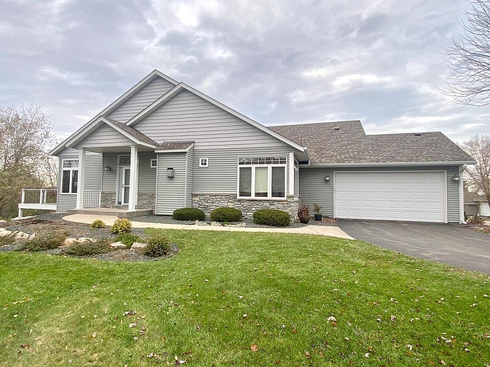 This stunning, south facing end unit is open, sunny and bright. Vaulted and dramatic, with pillars and gas fireplace, this open design is very appealing! Counter height breakfast bar is a great gathering place, or a spot for a quick bite. Nearby laundry and half bath off the garage entry. Plenty of space for a formal dining set, the great room concept